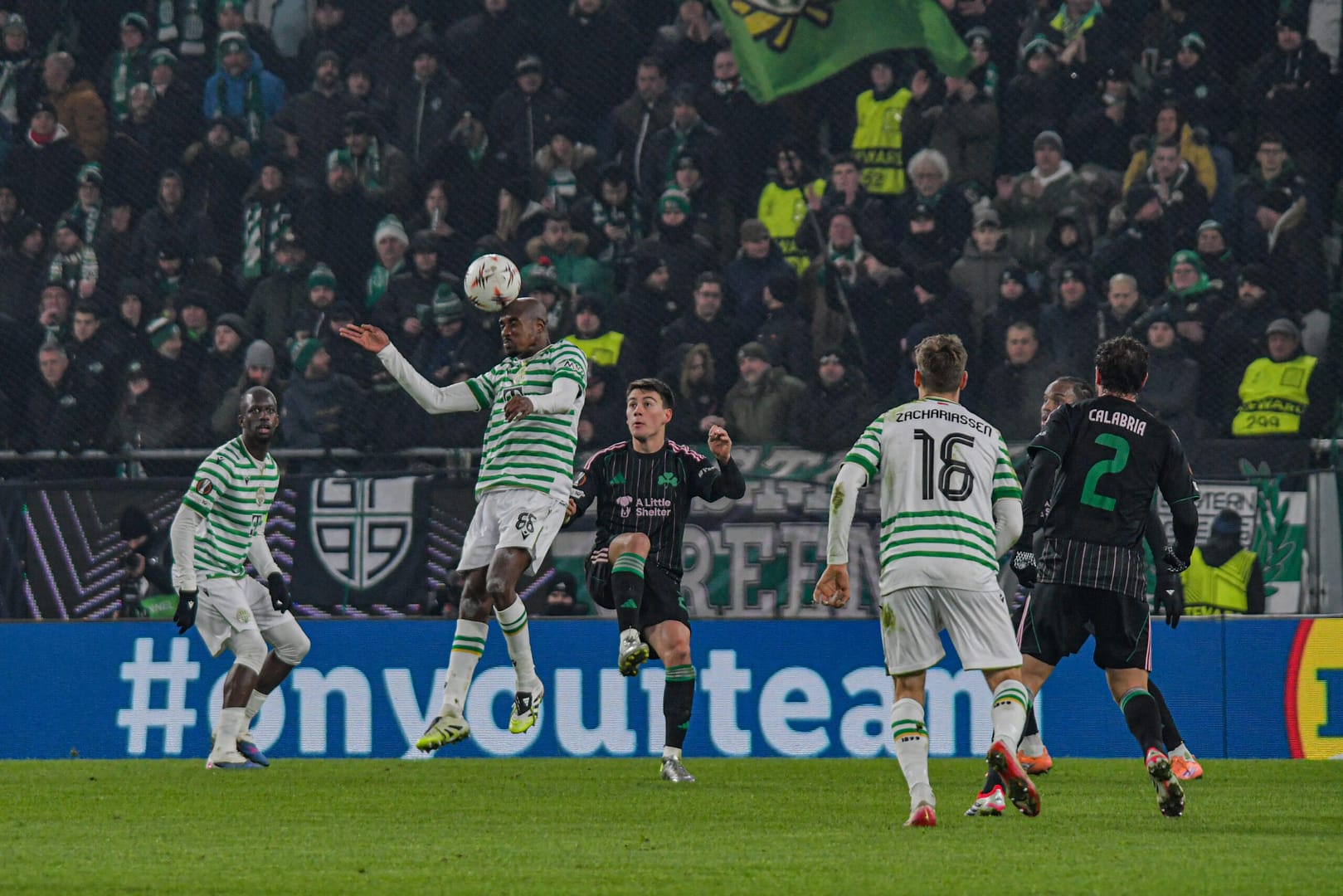 Yusuf megkapta a labdát, így nem alakult ki helyzet, de továbbra is a Fradi támadott, majd Kristoffer Zachariassen lövését Palmer-Brown kézzel blokkolta.
