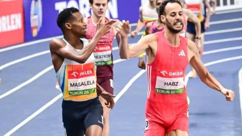 Masalela llega primero a meta en Torun (3.32.55) pero es descalificado. Lo que era un inicio de temporada espectacular se convierte en un fallo clamoroso por un gesto infantil. pic.twitter.com/L1AFT6L2OO